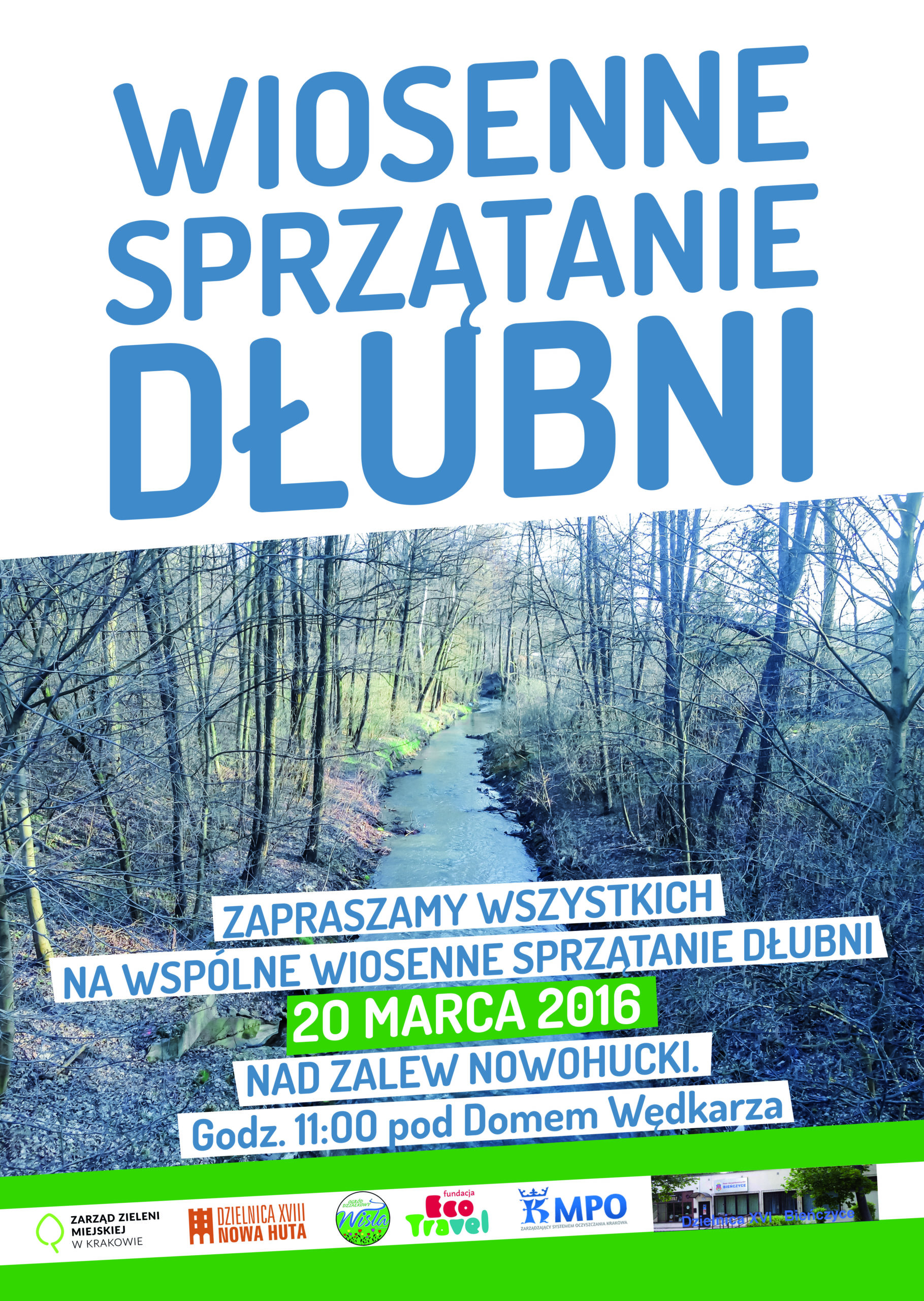 Wiosna to czas porządków u siebie w domu, na swoim własnym i wspólnym podwórku. Zapraszamy wszystkich na wspólne Wiosenne Sprzątanie Dłubni 20 marca 2016 nad Zalew Nowohucki.